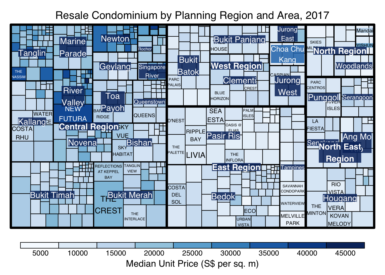 filter(`Property Type` == "Condominium", `Type of Sale` == "Resale")treemap(realis2018_selected,