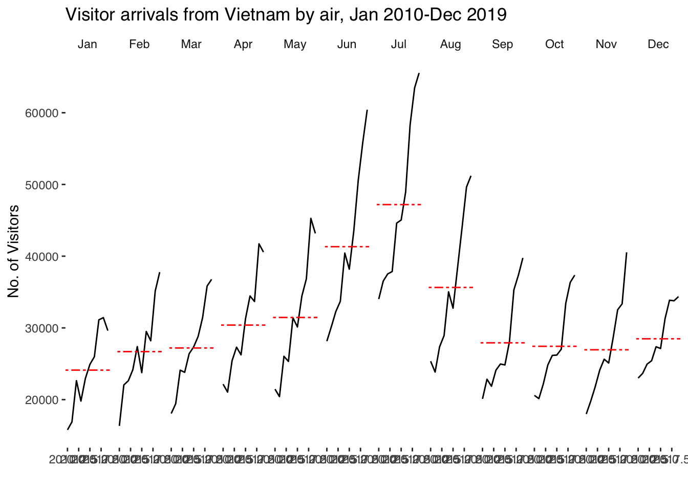 title = "Visitor arrivals from Vietnam by air, Jan 2010-Dec 2019") +