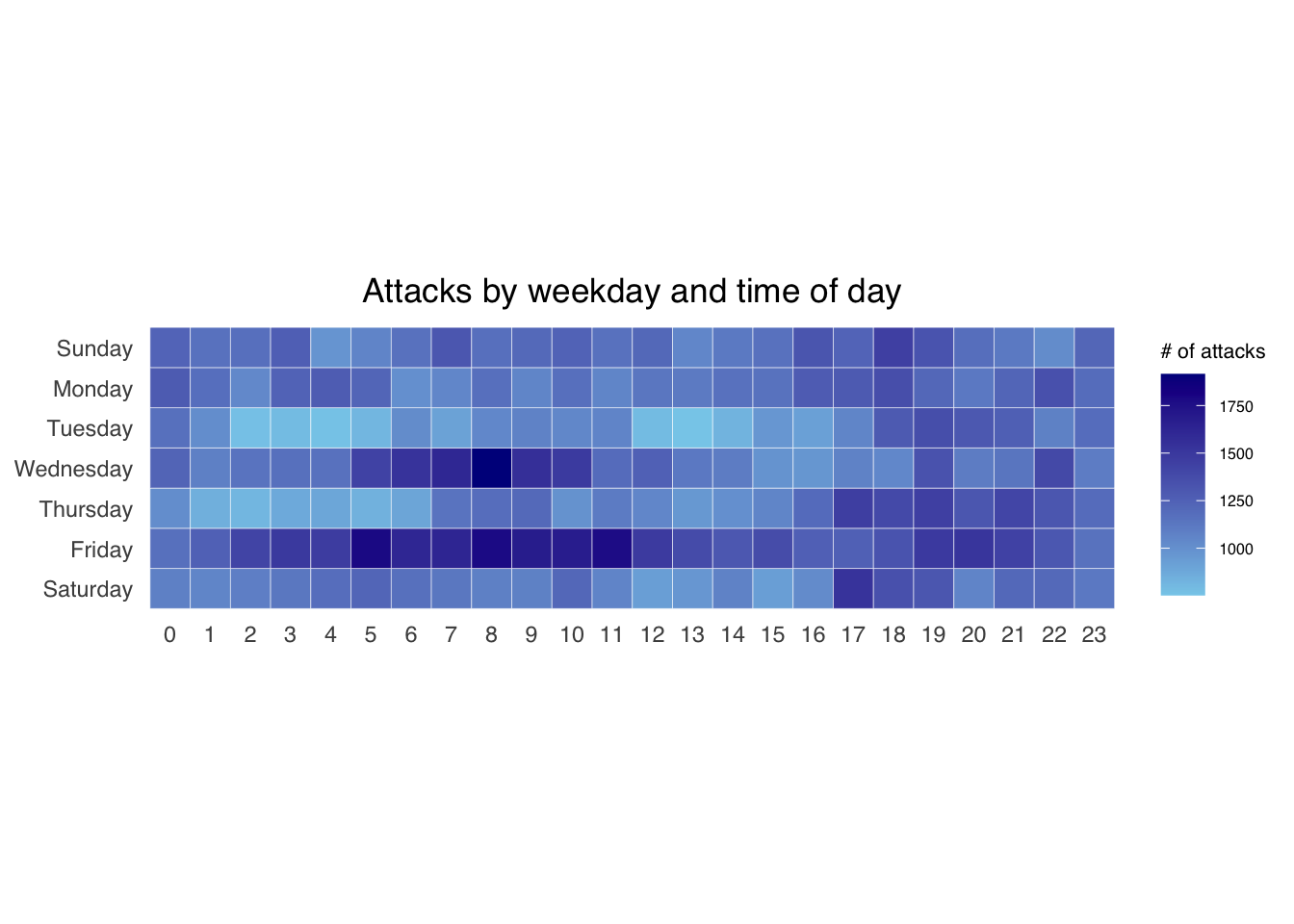 hour, levels = 0:23))kable(head(attacks))| tz | source_country | wkday | hour |