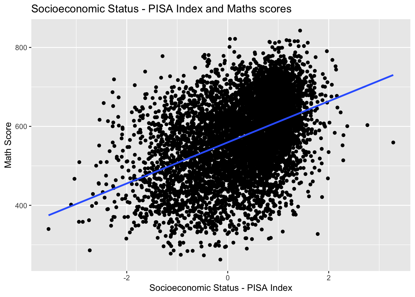 labs(x = "Socioeconomic Status - PISA Index", y = "Math Score")