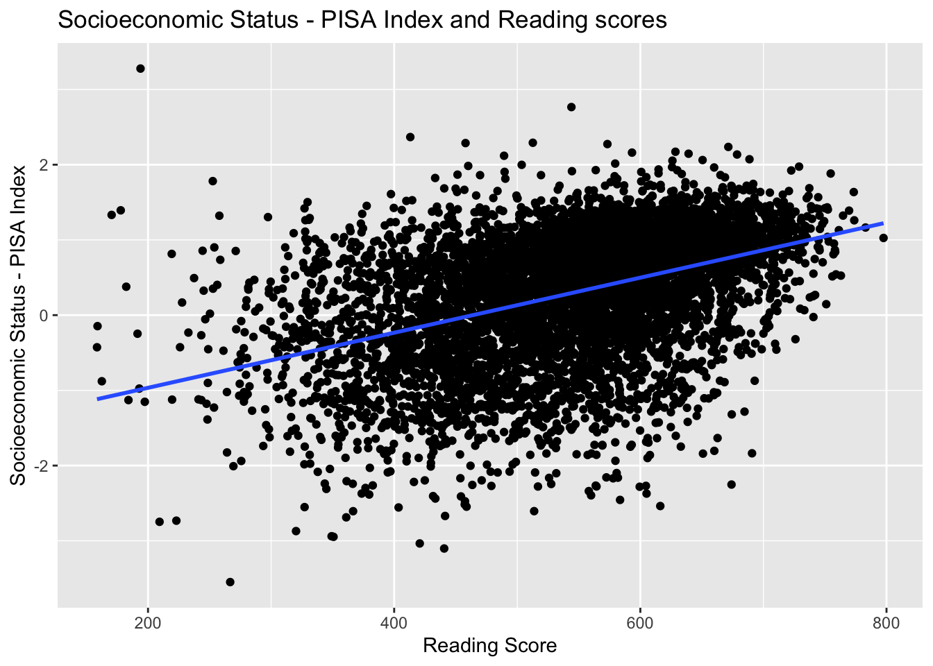 ggtitle("Socioeconomic Status - PISA Index and Reading scores") +